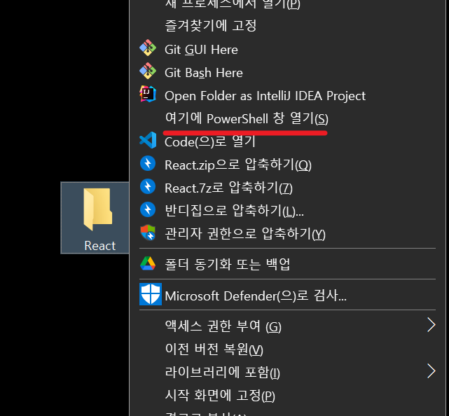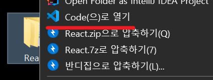 폴더를 우클릭하여 기존에 설치한 Vscode로 열기를 누르면