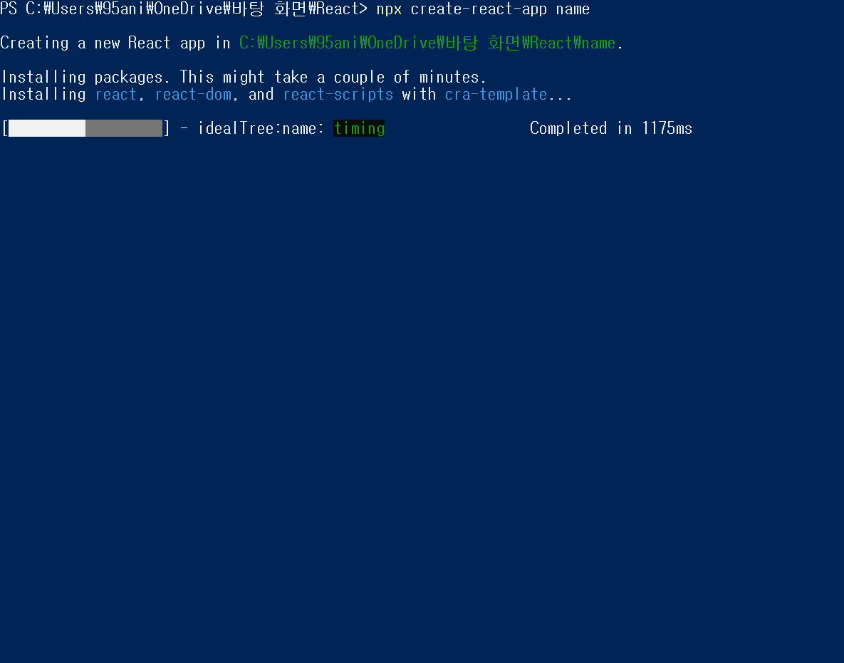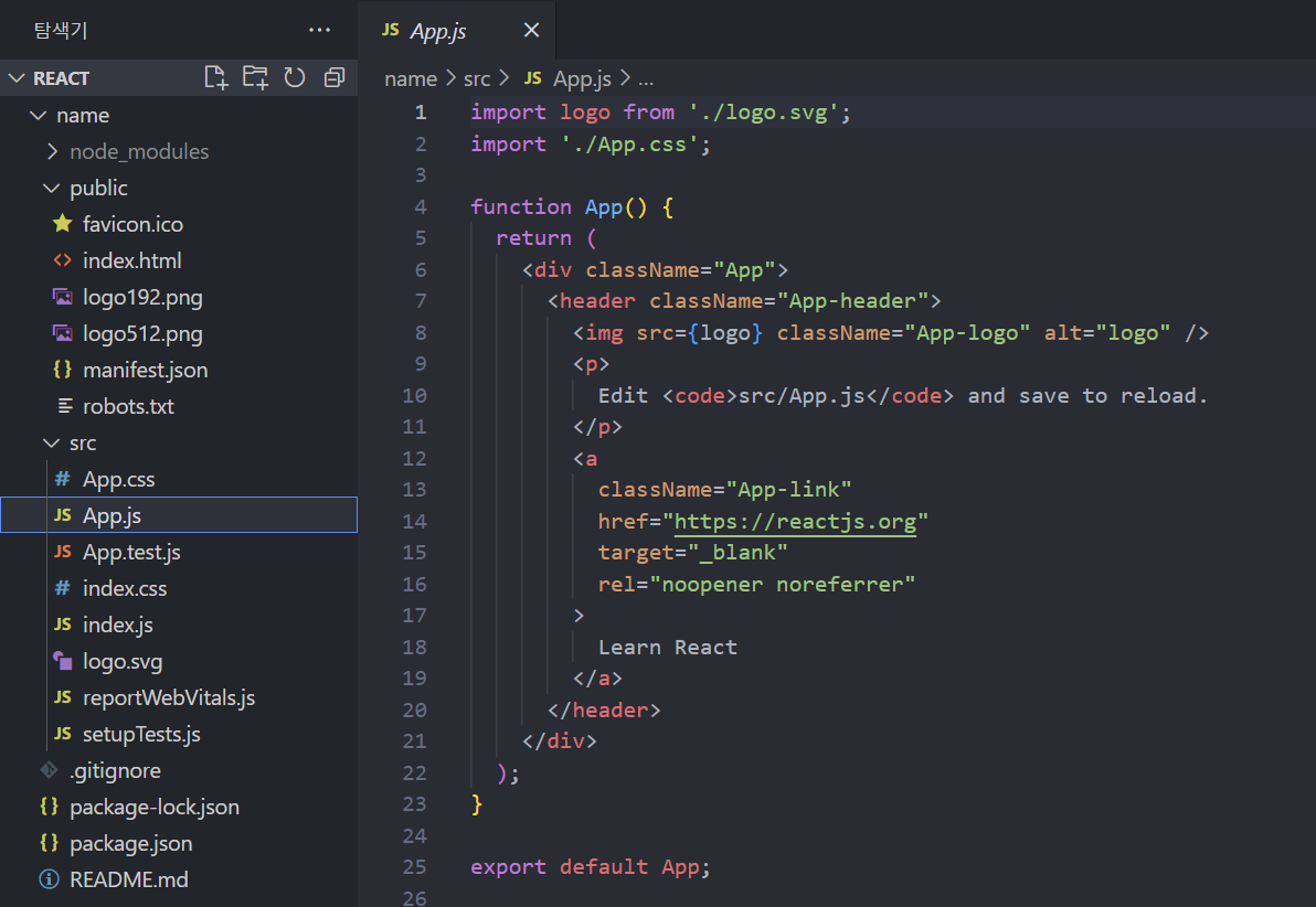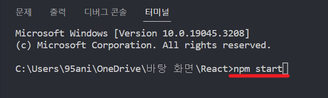 여기에 npm start 라고 적으면 해당 프로젝트가 실행된다.